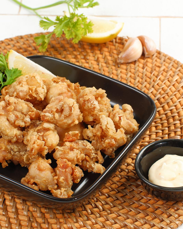 加入優格、檸檬原汁、蛋及些許黑胡椒、鹽巴醃製肉,裹上麵包粉或玉米脆片等做為外皮脆衣,放入烤箱烤熟即完成。