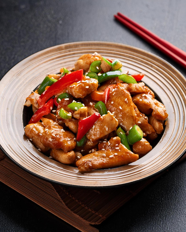 將雞柳條拌炒上色後盛起備用,鍋內酌量加入柚子醬、蜂蜜、檸檬、泰式醬,加入雞柳條一同拌炒收汁即完成。